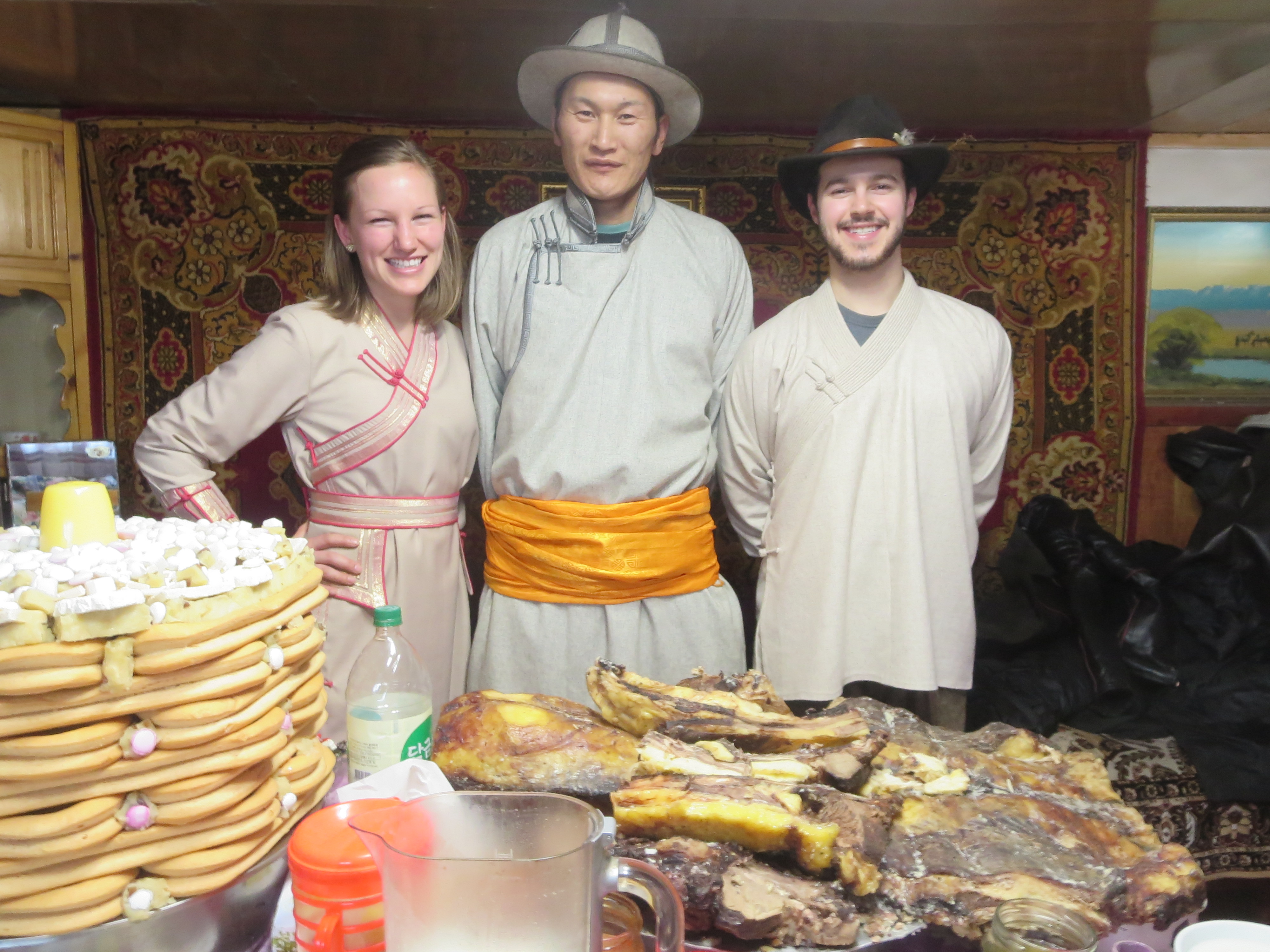 Katie and I stand in front of the table at our friend, Urnaa’s grandmother’s home. I’m proudly holding the bowl of fermented mare’s milk, “airak,” and trying to battle the array of vodkas placed in front of me in various glasses.