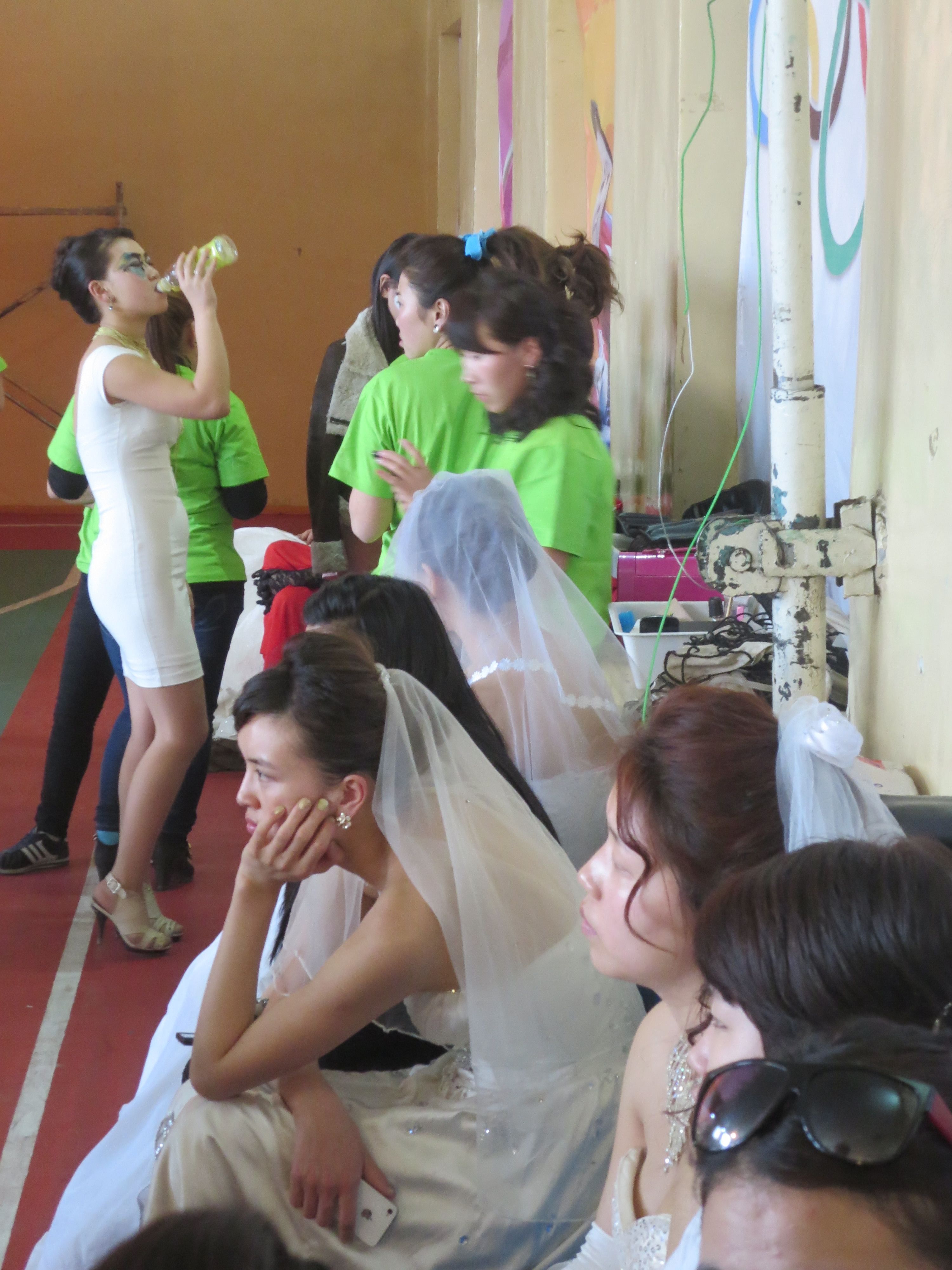 In between rounds bridal models rest and hydrate! They’re waiting for their makeup.