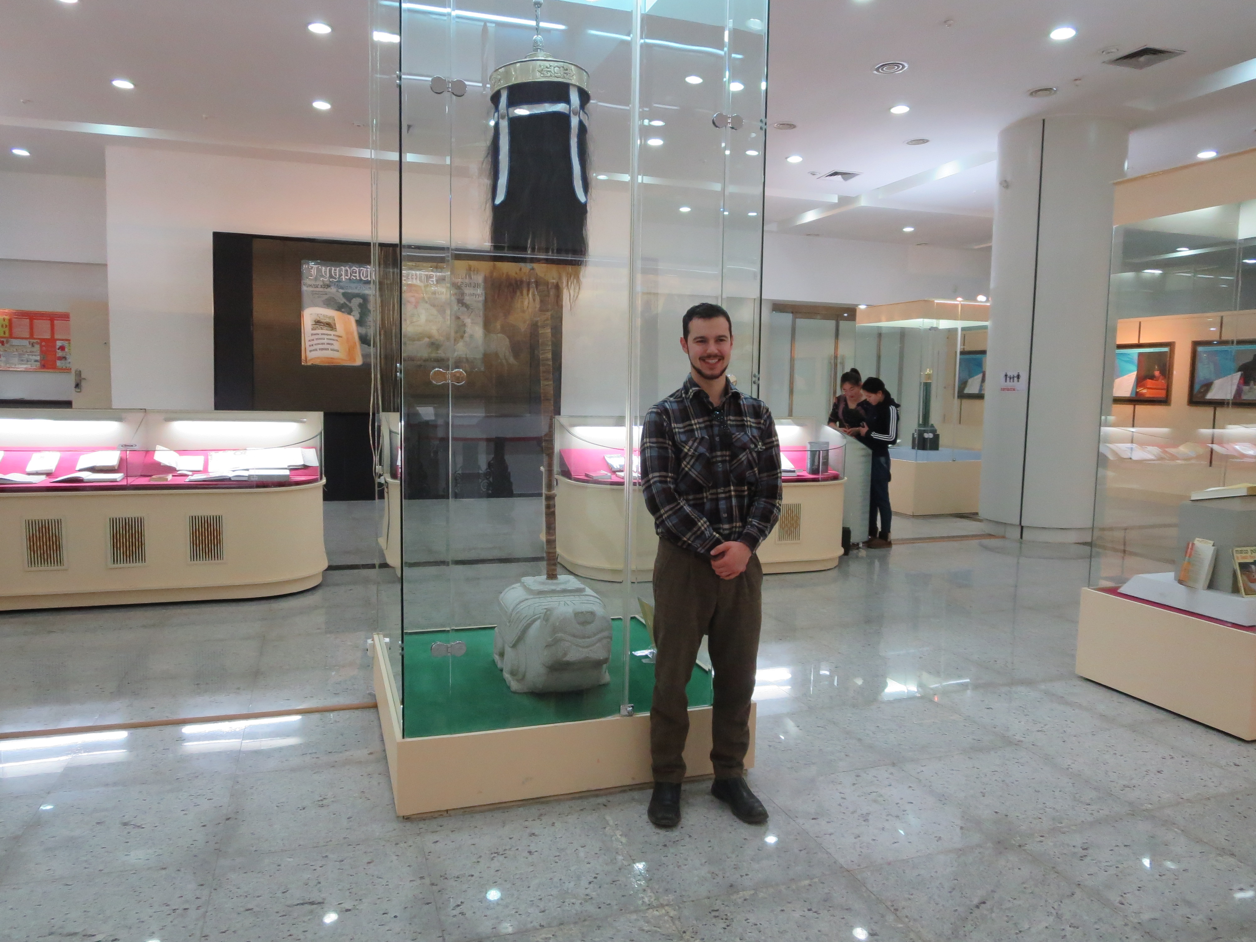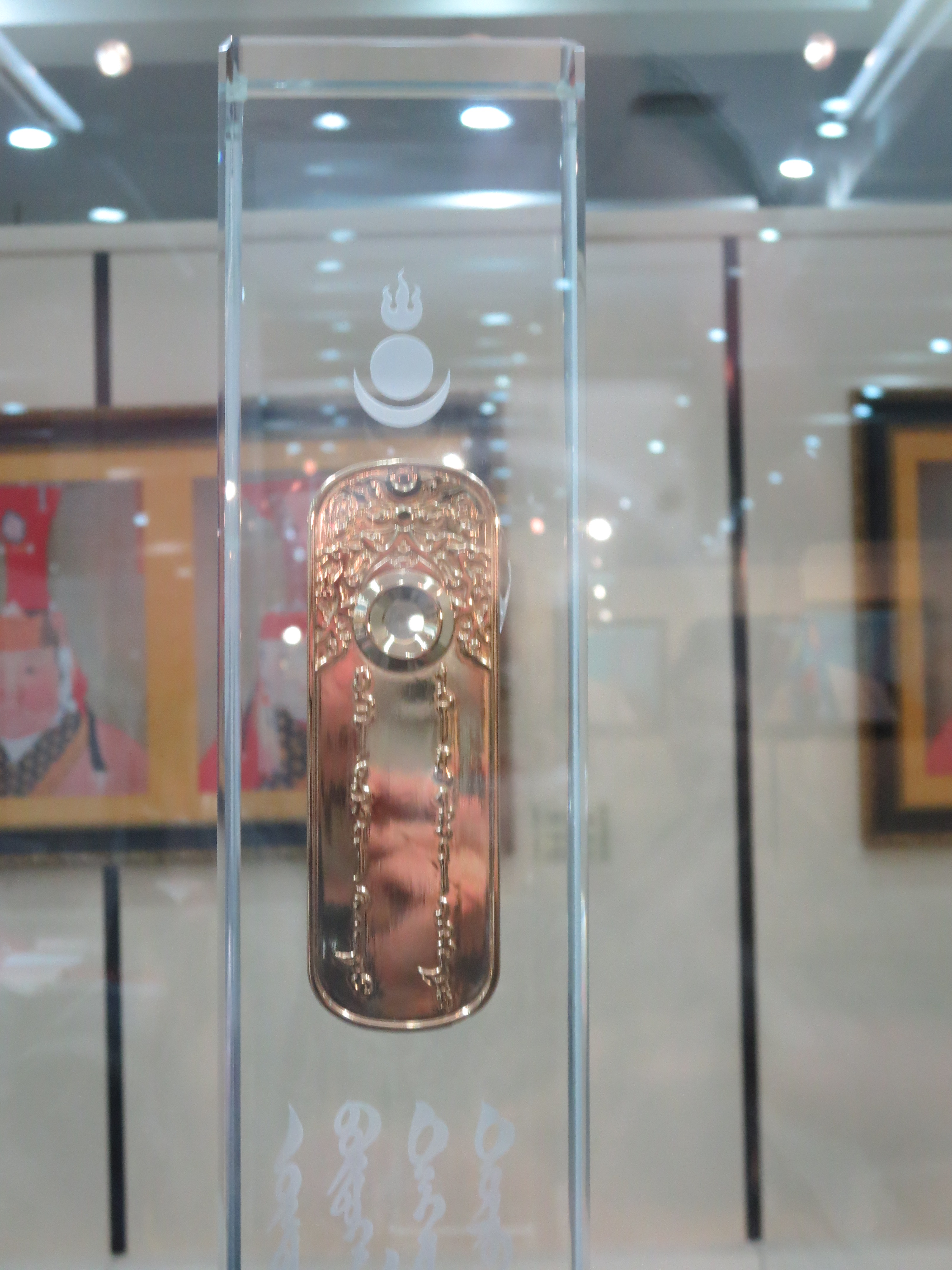 After forty minutes of waiting for all the teachers and students to gather, we made our first stop at the National Museum in the basement of the Parliament building. After going through security, we gazed upon many priceless artifacts — well, in between photo-shoots that is. It seems like for every special occasion or outing I attend, particularly with my students, around fifty percent of my time is spent posing for photos. Considering I speak very little, if any, Mongolian, this is quite fine with me and allows for genuine interaction without language being necessary. [My students’ English level is very low and most of them are very shy to speak with me beyond greetings and small talk.] However, sometimes I can’t help but feel a bit objectified or tokenized as “the white person,” or, conversely, sometimes feel that I’m treated like a celebrity. I try not to let the extra attention go to my head but the daily unwanted attention in the hallways in my school can be wearisome, especially because the students’ English is usually so low that I can’ actually engage in real conversations with them.