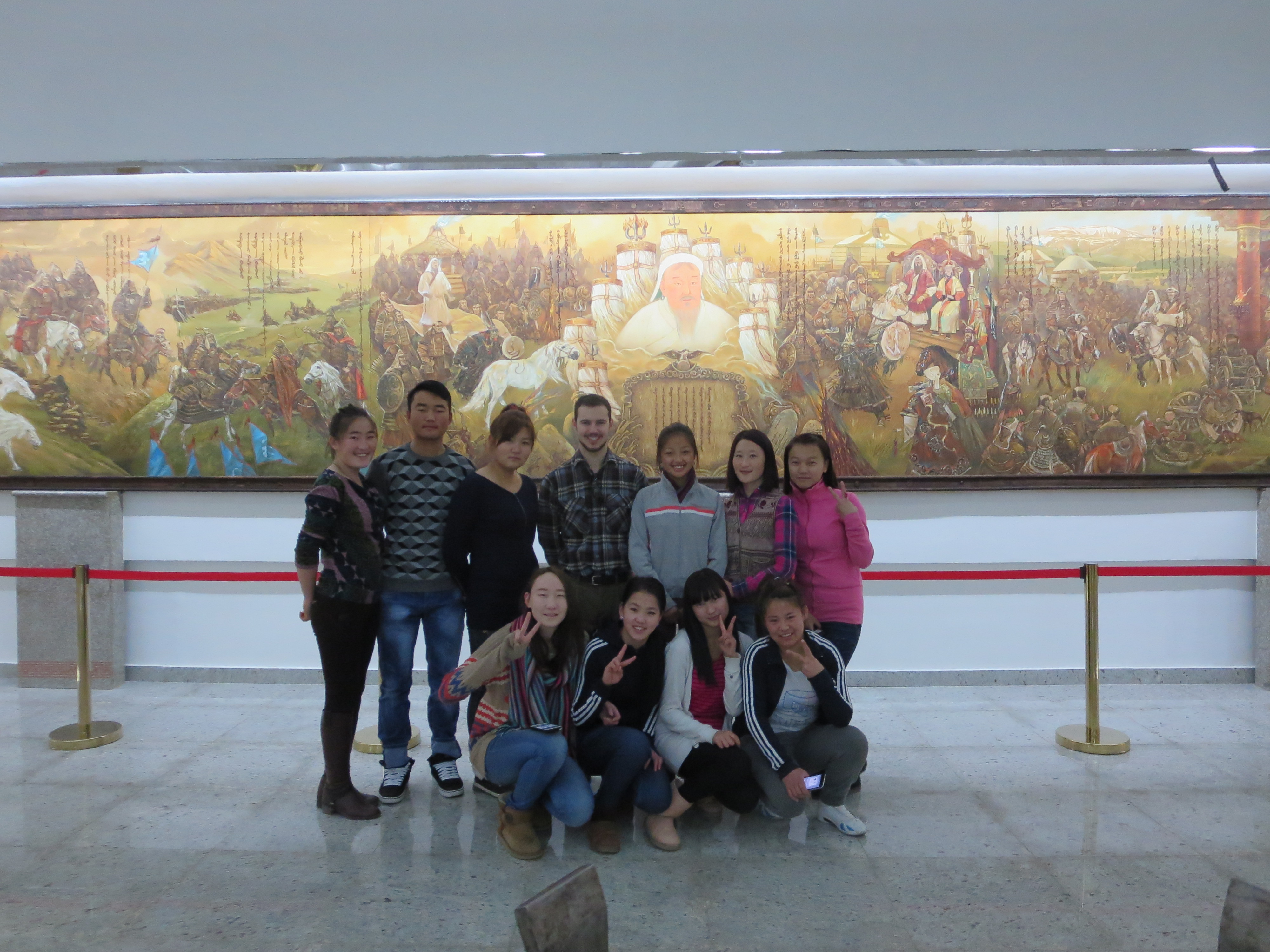 One of the dozens of photo ops throughout the day. This time we’re posing in front of a gigantic mural of Genghis Khan.