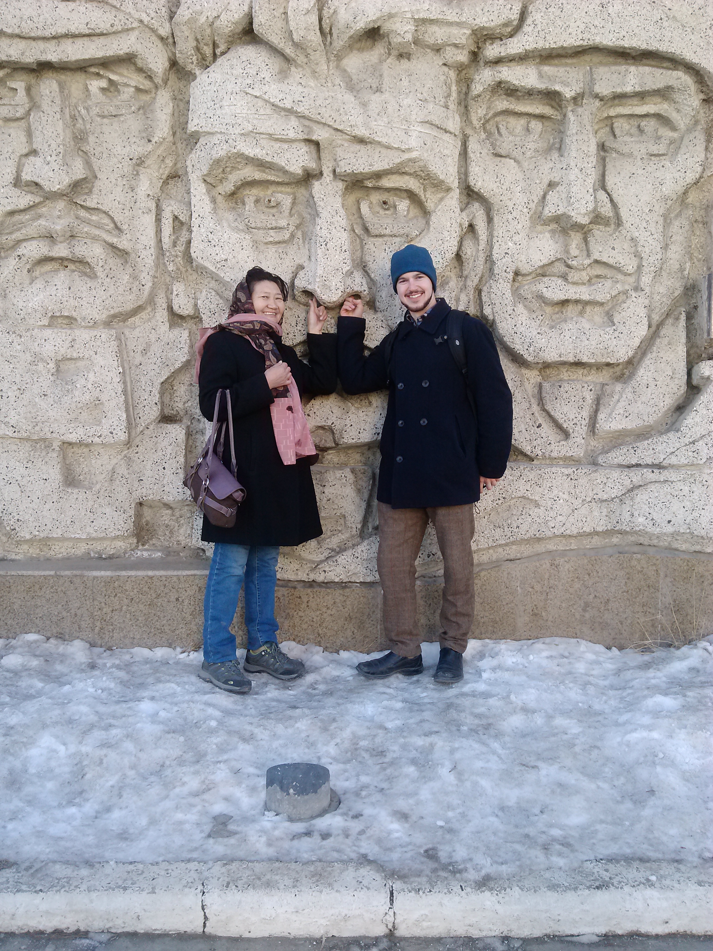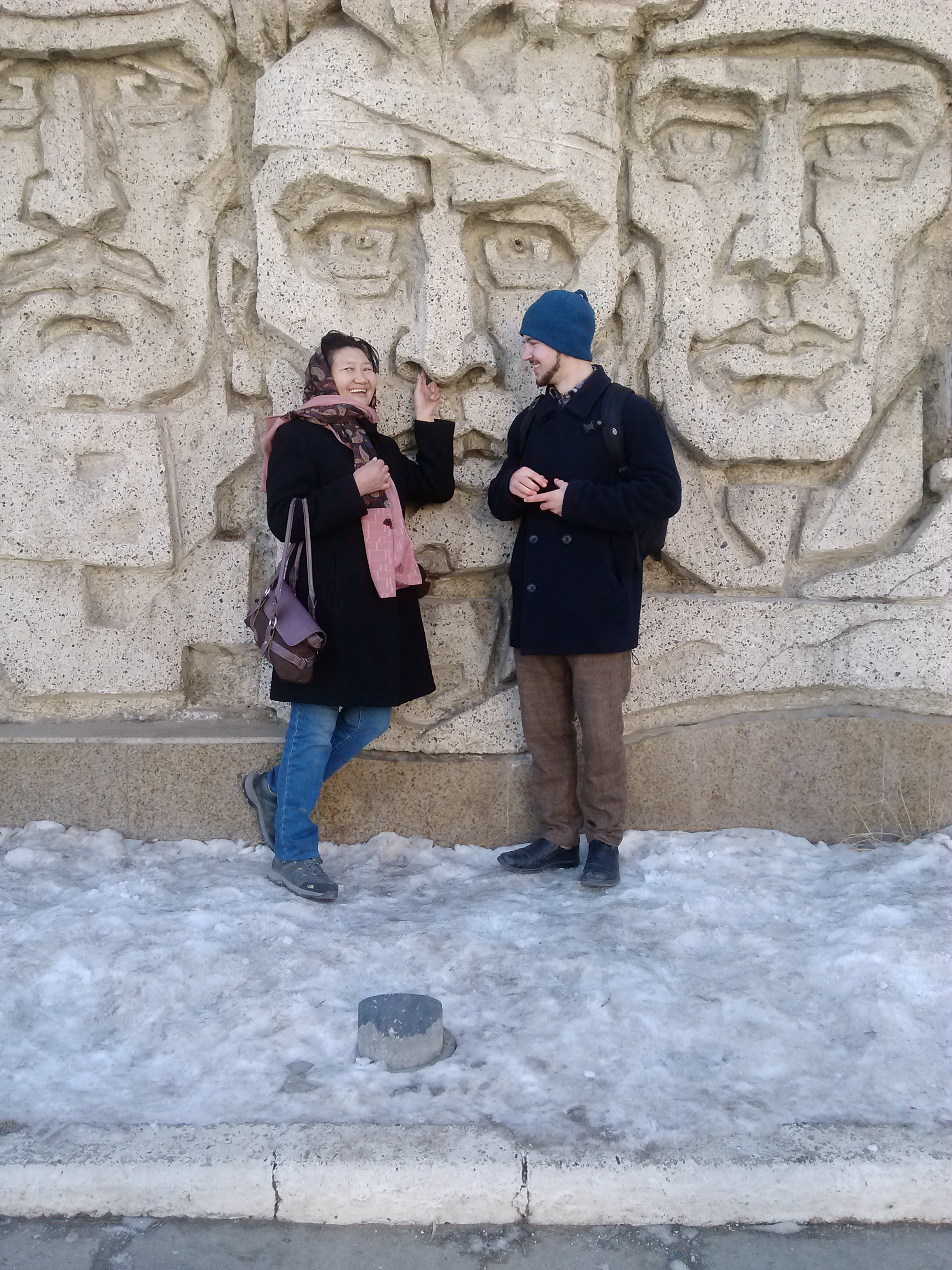 The next stop was to Zaisan hill, a massive Soviet WWII monument erected well before the democratic revolution in 1990. Approaching the many steps leading to the monument, I helped three of my students practice their English by counting each one as we marched up them in unison. Six hundred and four steps later, we reached the top!