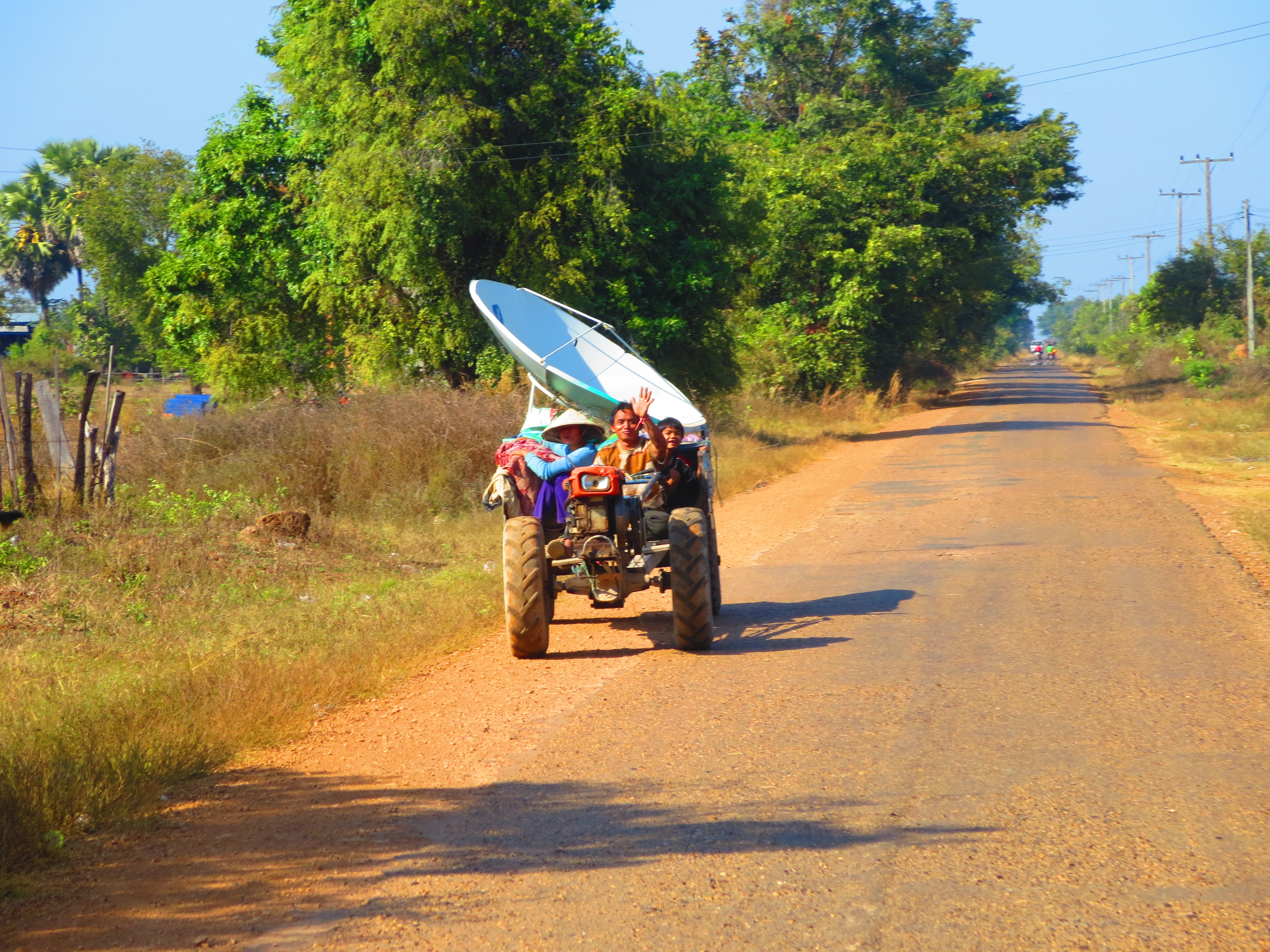 On our trip from the riverside town of Pakse to the small island of Don Det my friends and me experienced a very local means of transportation. The “song-tu” is a large flat-bed truck modified to hold three parallel benches underneath a tin roof loaded down with luggage. Typically, these barrel down the road with people packed in like sardines, hanging their arms and heads out due to the crammed seating.