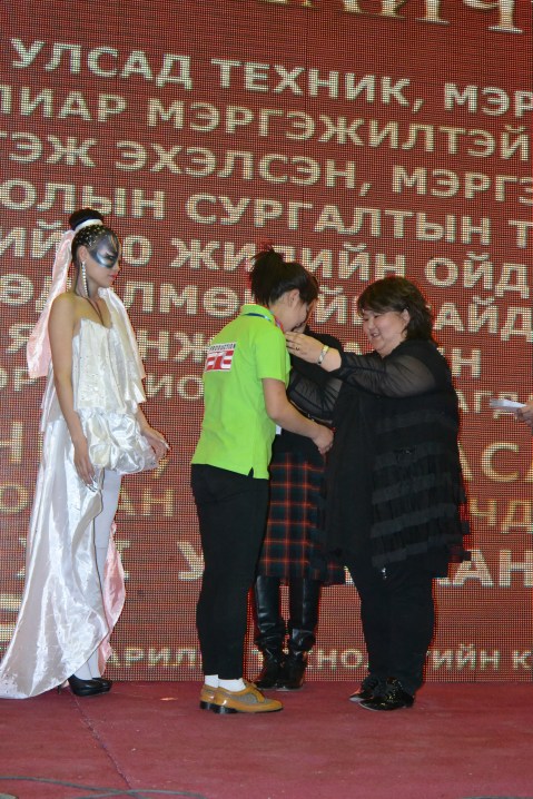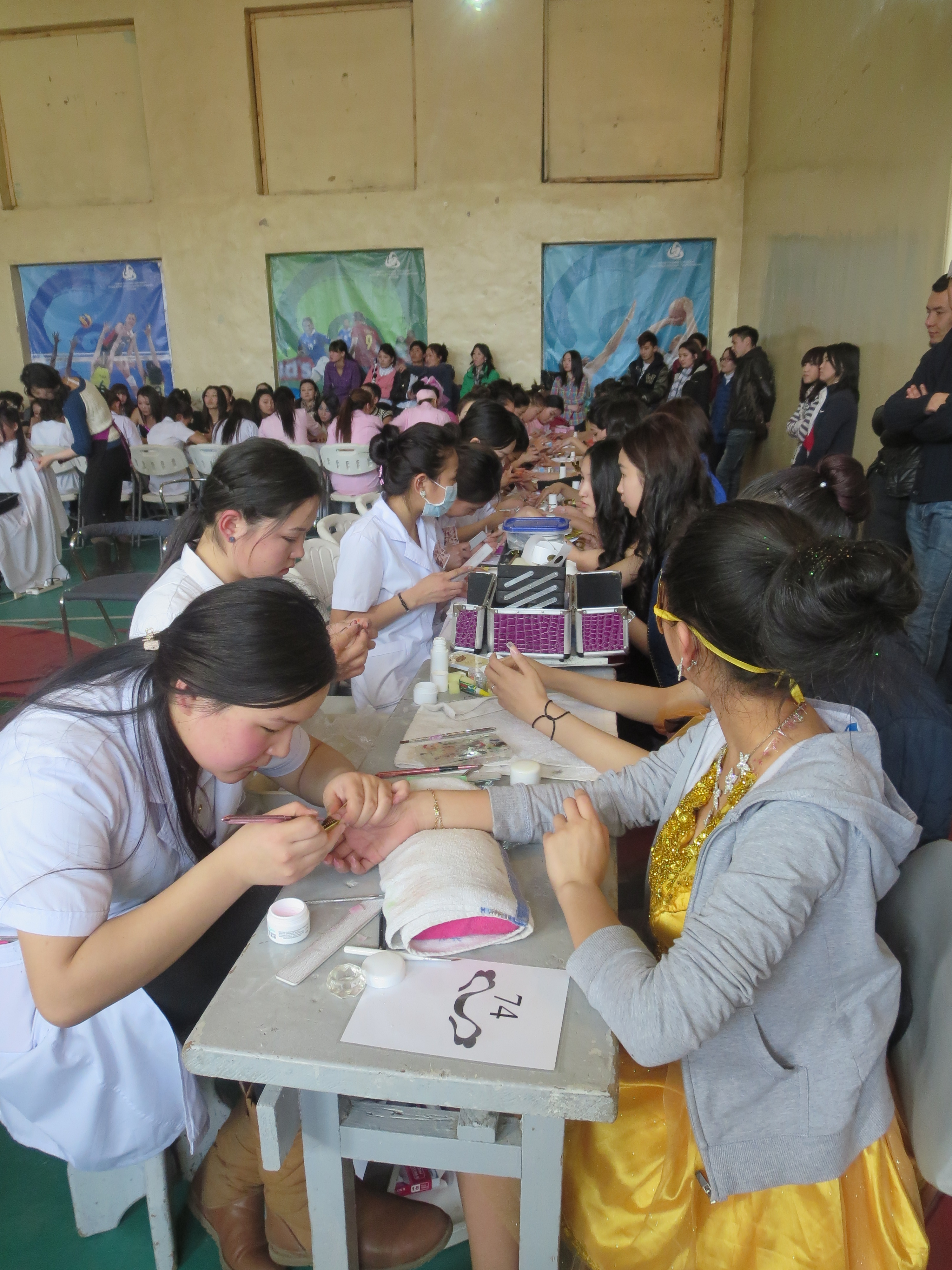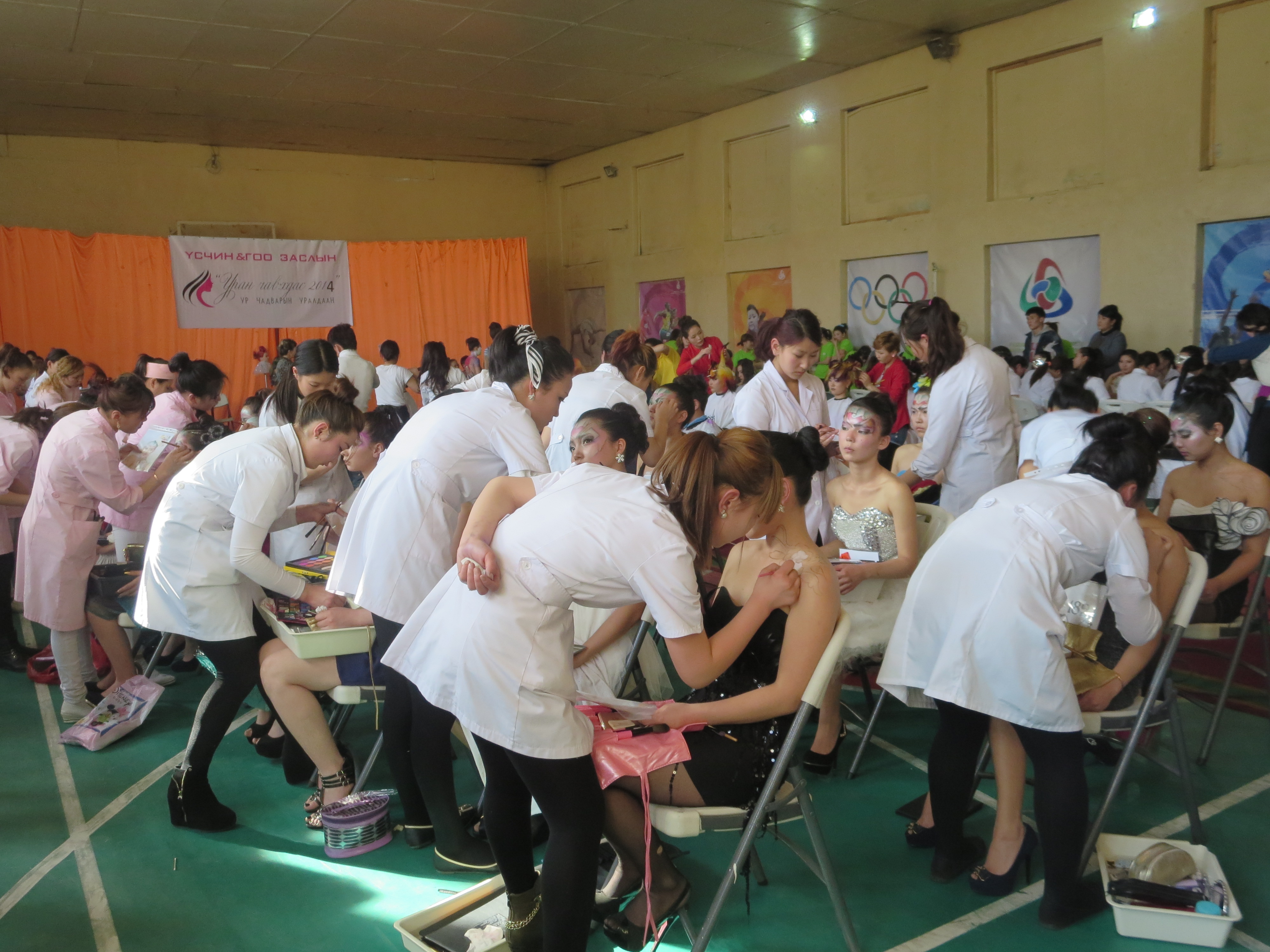 At first I don’t realize how important this school event is but soon a co-teacher informs me that winning means advancing to the national competition and potentially gaining recognition among the top hair design studios and beauty salons in Mongolia. There are five students in the room who won the national competition last year for their respective events and traveled to Brazil. One student won two gold medals at the international competition for creative hair design in the men’s and women’s categories for her age group.