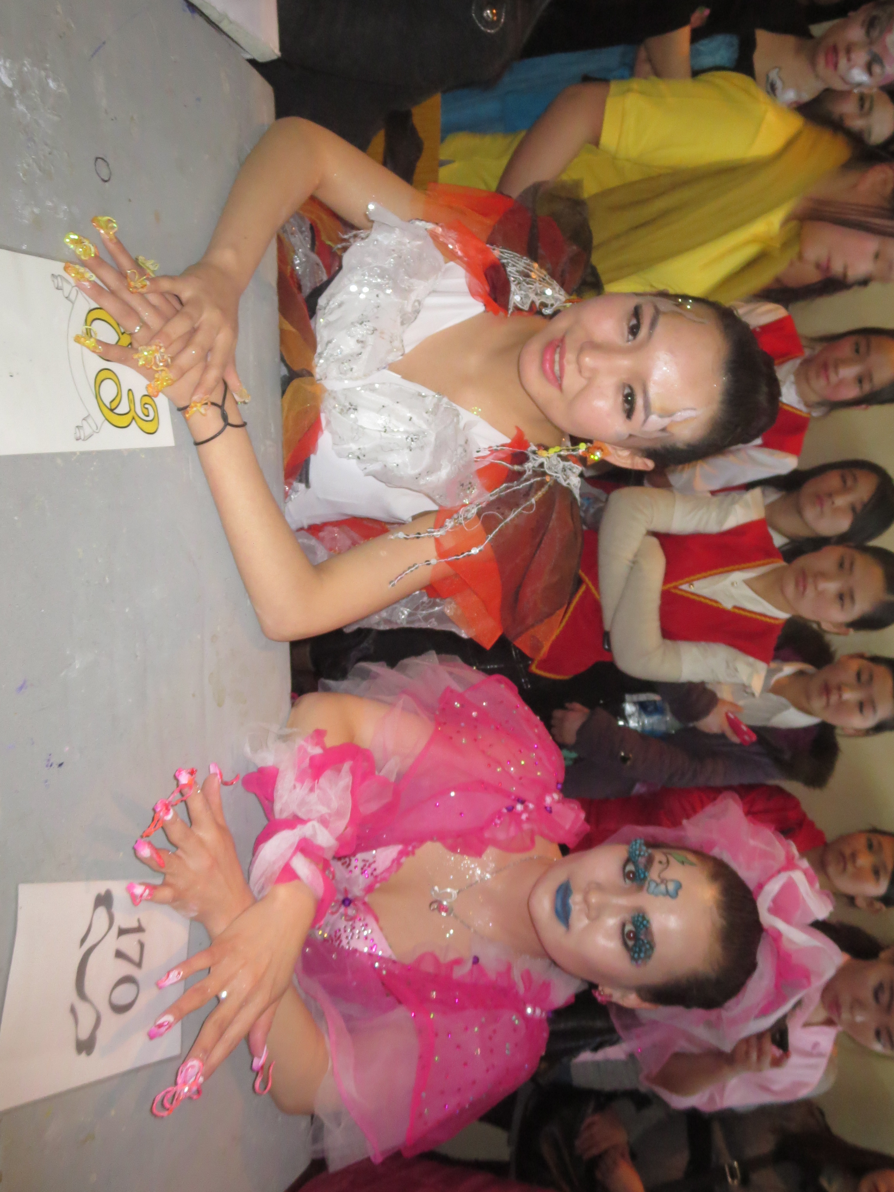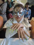 The room is alive with colors and textures, a teeming mass of cosmetics students, hair design trainees, and nail artist apprentices rushing to finish their creations before the deadline. It feels like an episode of a fashion-based reality TV show. Tensions are high. The focus and intensity of the contestants is palpable. Rihanna, Swedish house Mafia, and rave music blast my ears. I imagine the models going to an epic after party following the contest, but I’m told there is none!