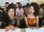 Creative hair design competition between second-year diploma students. The stylist in red won an international competition last year.