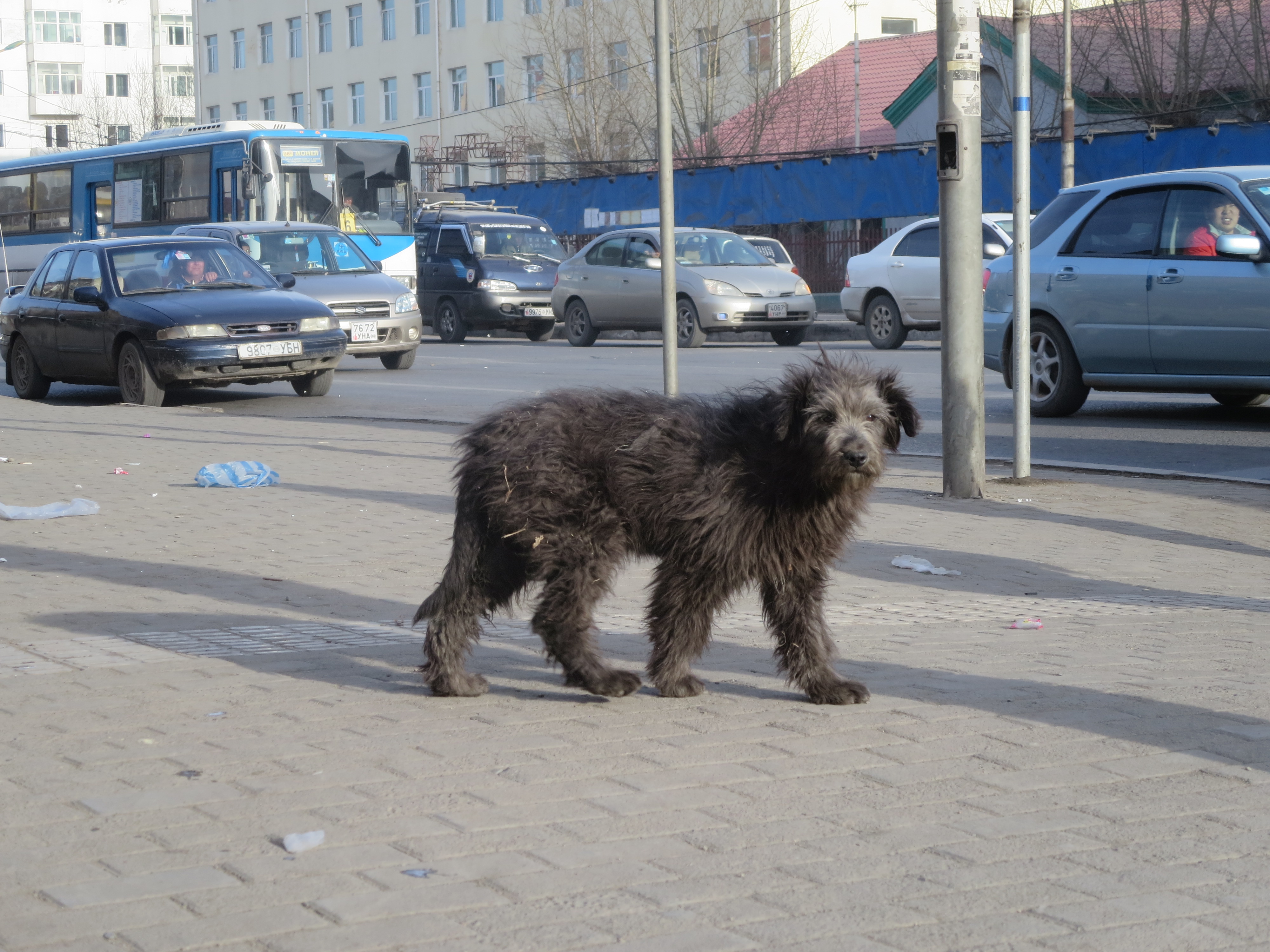 However, in the quickly-modernizing capital city the traditional roles of dogs are absent and thus their utility is much less. On the contrary, they can be a major public nuisance and are often treated as such. Tales of animal rights abuses in Ulaanbaatar (as in many places in Asia) are not uncommon. Fellow foreigners have told me horror stories of drunken owners throwing massive rocks down from apartment windows onto tied-up dogs, killing them. Others have seen dogs kicked for fun by children in front of their parents. It appears reporting and enforcement of these offences is not a priority.